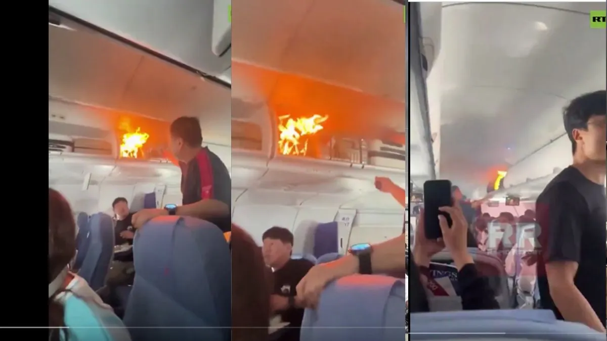 चीन की उड़ती फ्लाइट में आग लगने से यात्रियों में अफरातफरी मच गई। आग की लपटें उठते देख विमान को इमरजेंसी लैंडिंग करनी पड़ी।