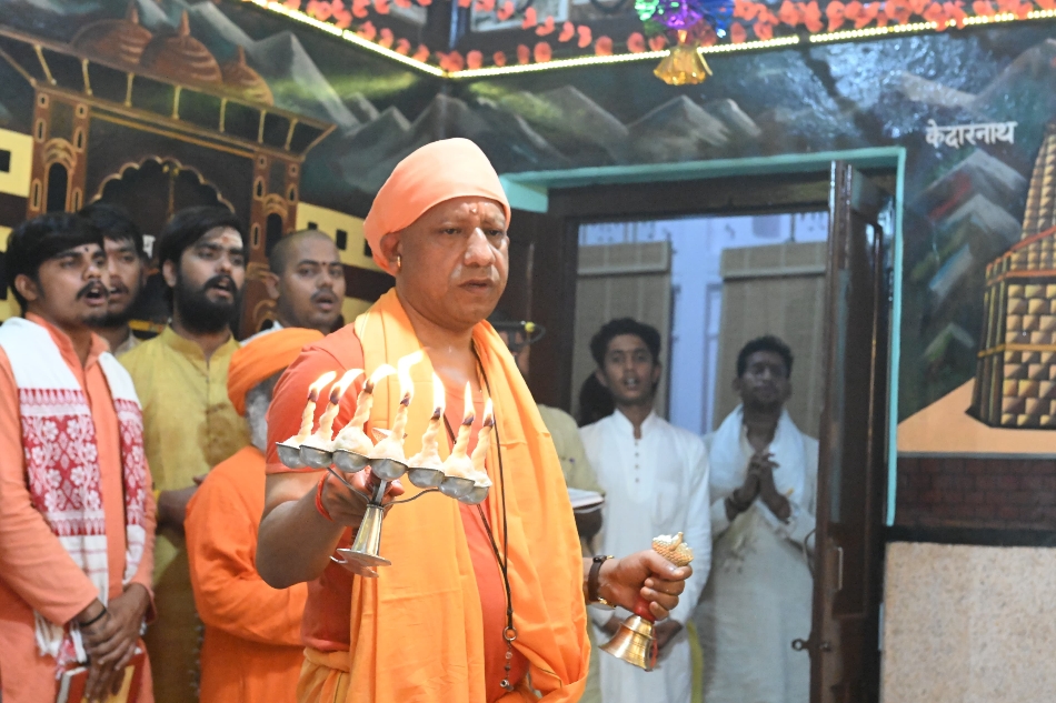 गोरखनाथ मंदिर में मां दुर्गा की आरती करते मुख्यमंत्री योगी आदित्यनाथ