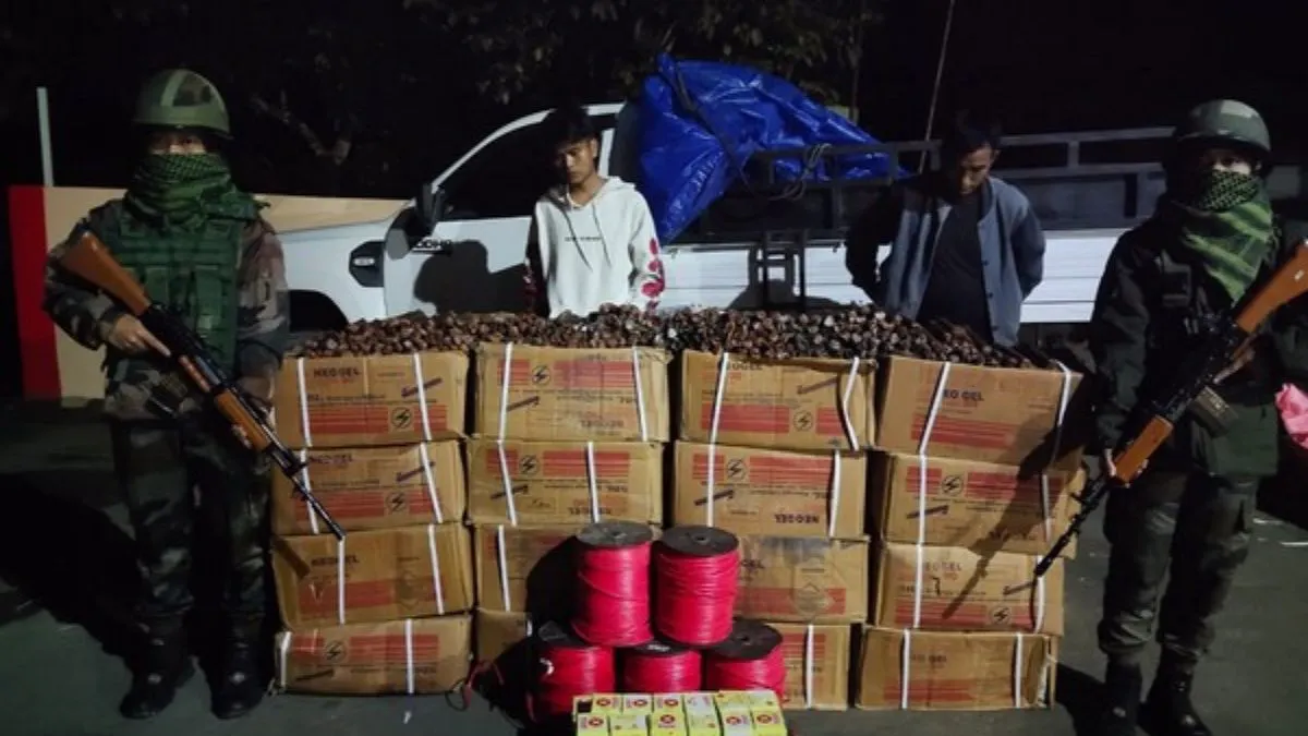 असम राइफल्स ने मिजोरम पुलिस के साथ मिलकर सेरछिप-थेनजॉल रोड पर वाहन चेकिंग के दौरान 9,600 जिलेटिन की छड़ें, 9,400 डेटोनेटर और 1,800 मीटर से अधिक कॉर्डटेक्स बरामद किया है।