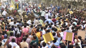 पुलिस और प्रदर्शनकारी आमने-सामने