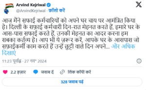 उन्होंने अन्य लोगों से भी ऐसा करने के लिए कहा और लिखा, “आप भी छुट्टी वाले दिन अपने घर चाय पर बुलाएं और उनसे सुख-दुख की बातें करें, उन्हें बहुत अच्छा लगेगा. आइए, हम सब मिलकर इन्हें सम्मान देते हैं और अपनी दिल्ली को साफ-स्वच्छ और सुंदर बनाने में अपना योगदान देते हैं.”