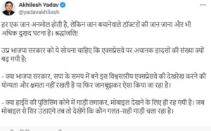 अखिलेश यादव ने हादसे पर की ये पोस्ट