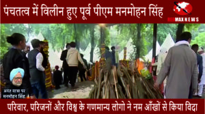 पूर्व प्रधानमंत्री डॉक्टर मनमोहन सिंह को दिल्ली के निगम बोध घाट पर नेताओं और परिवार द्वारा अंतिम श्रद्धांजलि अर्पित करने के बाद पूरे राजकीय सम्मान के साथ अंतिम संस्कार किया गया। पूर्व पीएम मनमोहन सिंह की बड़ी बेटी ने मुखाग्नि दी। इसी के साथ वह हमेशा के लिए पंचतत्व में विलीन हो गए।